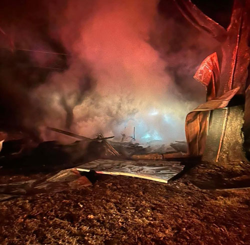 Units arrived to find the structure fully involved and collapsed. The barn contained several vehicles as well as an RV that was occupied. Luckily the occupant had escaped. Units operated on scene for 2 hours.