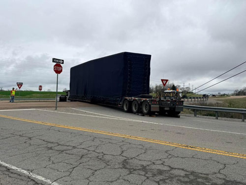 An oversized load has become stuck at the intersection of Highway 64 and West Gaines Street in Lawrenceburg.