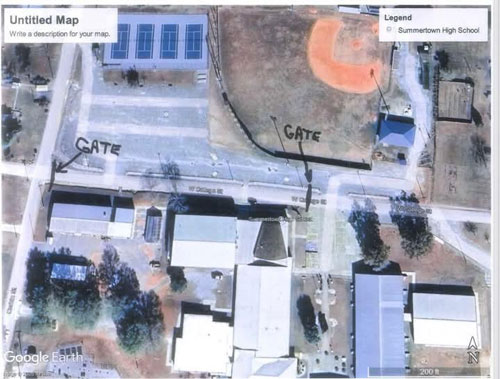 As depicted on the map - a gate will be erected at the intersection with Corbin Street (Corbin will not be affected) and another gate will be erected near the brick SHS sign on the East side of the SHS Gym steps.
