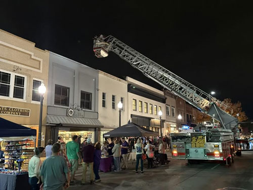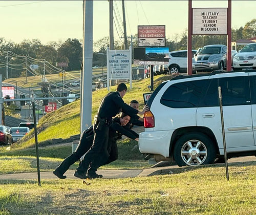 Ptl. Laken Arnett, Ptl. Marty Herndon, and Ptl. Tyrell Randolph helping a stalled vehicle on West College Street this evening.