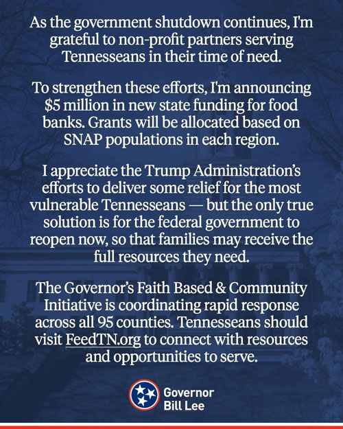 Gov. Lee warns to expect delay in SNAP benefits