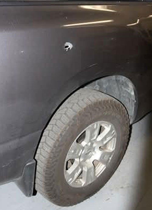 Preliminary investigation shows a gray Nissan Titan was traveling Eastbound on I-24 around 5:05 pm on Wednesday, November 12, 2025 when a dark sedan was cut off. That vehicle proceeded to drive erratically and ultimately fired shots at the truck around this location and time.