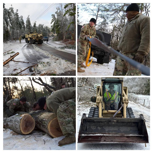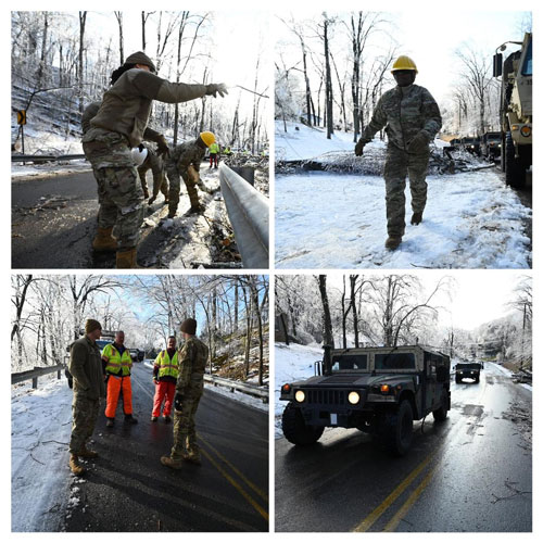 Tennessee National Guard Soldiers deploy to assist Nashville Electric Service by clearing debris from the aftermath of winter storms.