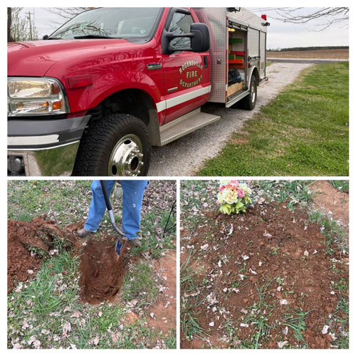 Alabama Firefighters help elderly woman prepare a grave for beloved pet.